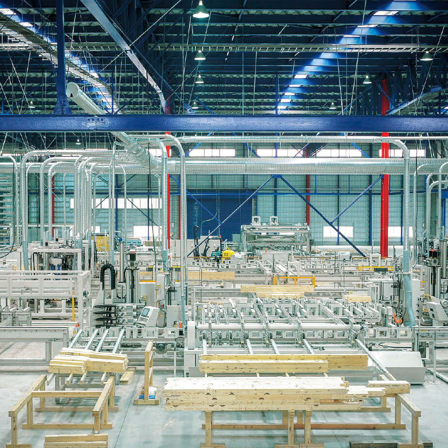 住宅の提供は地域密着で行っているポラスですが、プレカットに関しては全国6工場から毎月4,000棟分の住宅用木材を供給し、加工実績で日本No.1を誇っています。