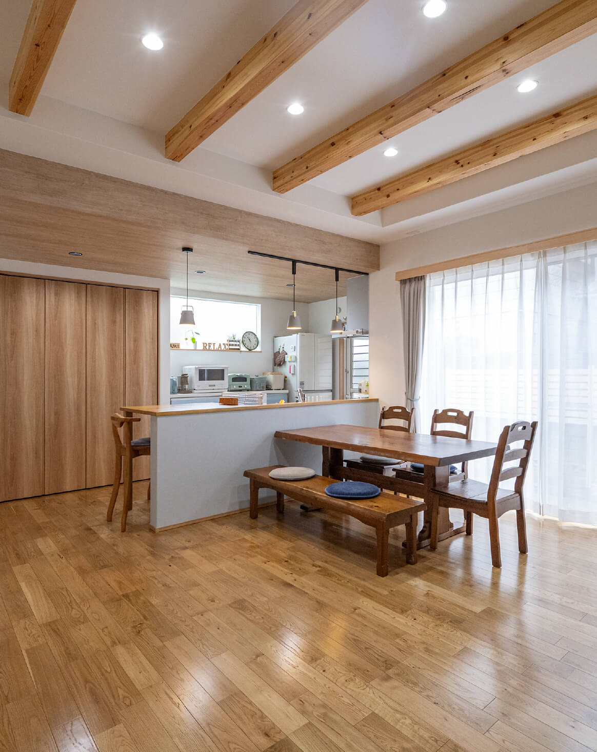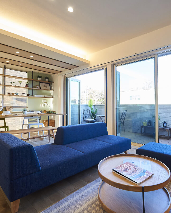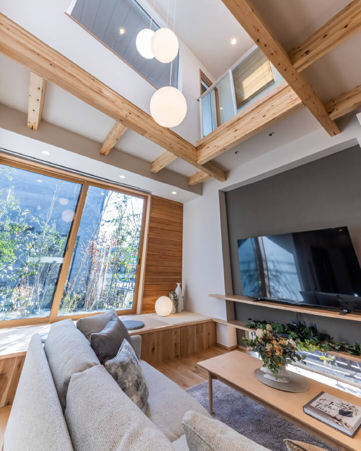 天井を高くすることで掃き出し窓の高さも2.2mを確保でき、ハイサッシを通して室内により多くの光を採り入れることを可能にしています。