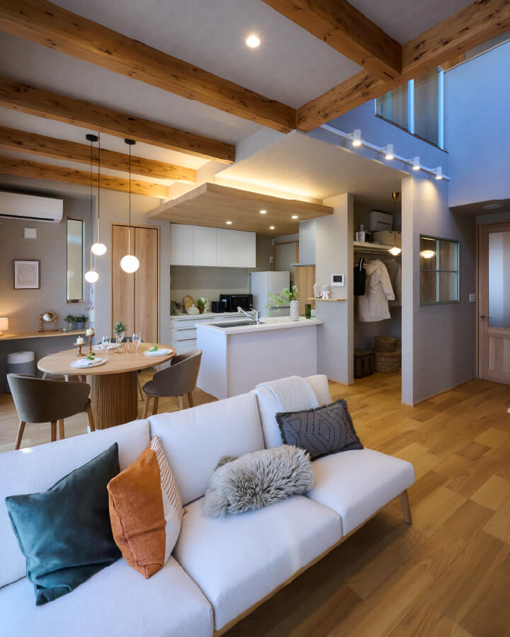 壁面が増えるため、大きな照明器具、アート、造作棚などを設置でき、個性的な空間作りが可能です。