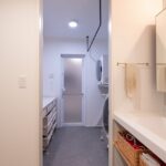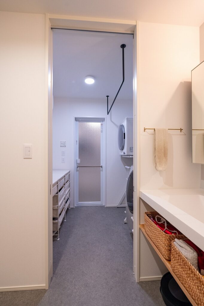 以前はあちこちに分散していたお子様の持ち物や日用品の収納場所を集約したことで、朝の支度が格段にやりやすくなったそうです。また、洗面台は2ボールを採用し、朝の混雑時にも余裕が生まれました。