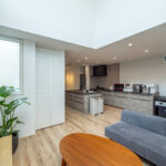 アイランドキッチンを希望されていましたが、「子どもたちがいるので、安全上レンジフードが中央に来るのは嫌」という理由から、シンクとコンロが分かれた2型キッチンを採用。結果的に空間を広く感じられるデザインとなり、大変満足されています。